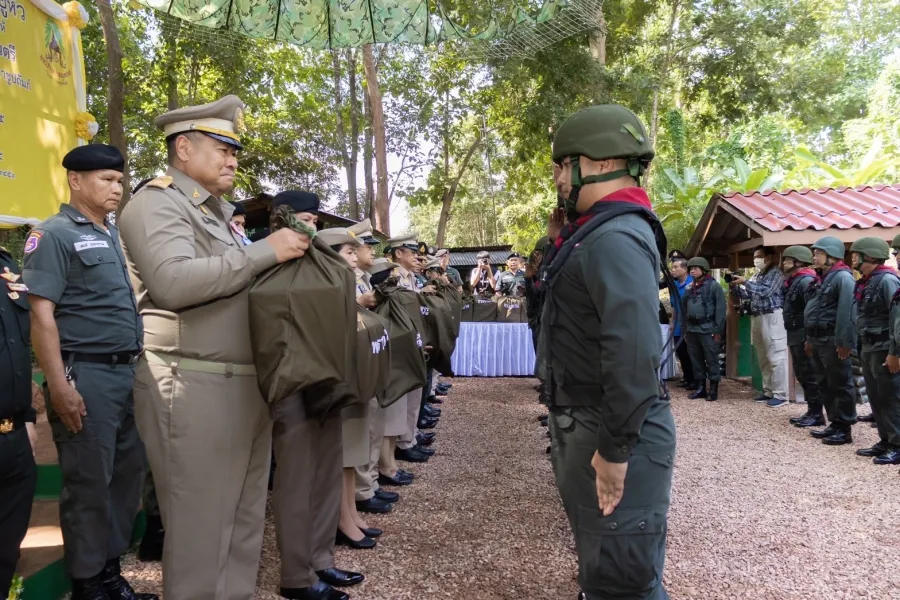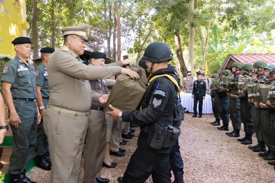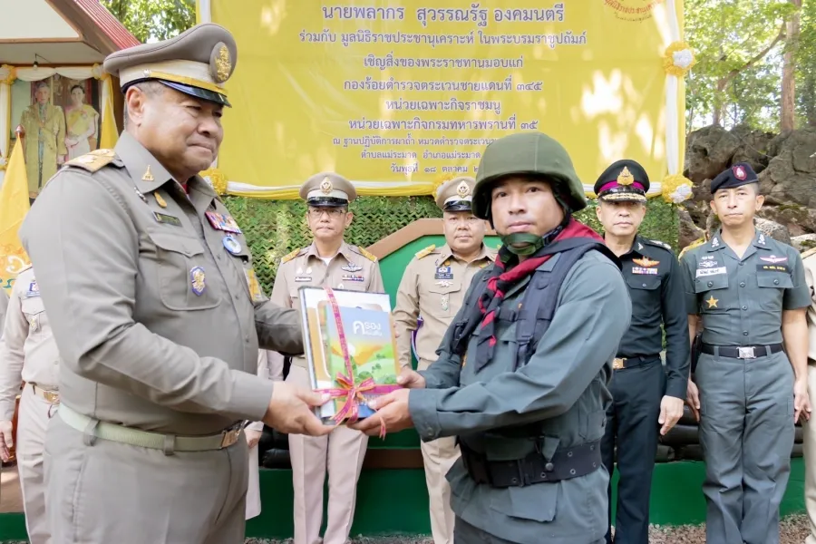จากนั้น องคมนตรีได้เชิญสิ่งของพระราชทาน จำนวน 40 ถุง มอบแก่ หน่วยงานความมั่นคงในพื้นที่ ประกอบไปด้วย