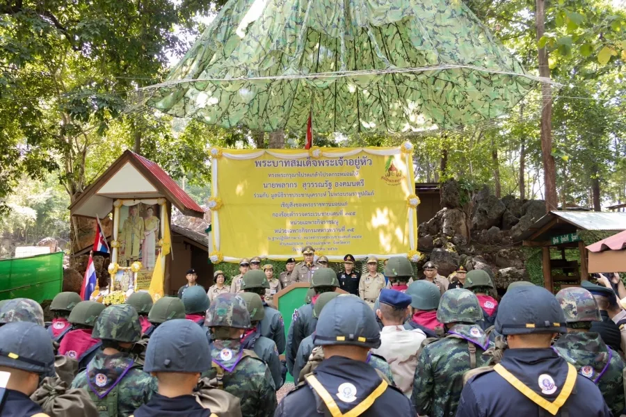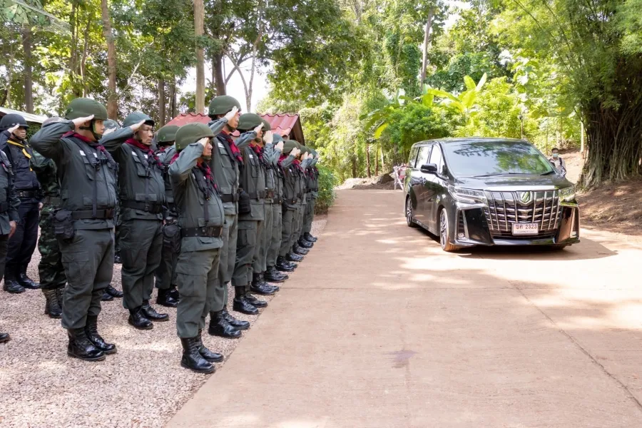 18 ต.ค. 66 เวลา 10.25 น. พระบาทสมเด็จพระเจ้าอยู่หัว ทรงพระกรุณาโปรดเกล้าโปรดกระหม่อมให้ นายพลากร สุวรรณรัฐ องคมนตรี และ พล.ต.ต.สุนทร เฉลิมเกียรติ รอง ผบช.ตชด. รรท.จตร. (สบ 8) พร้อมคณะลงพื้นที่ติดตาม และขับเคลื่อนโครงการอันเนื่องมาจากพระราชดำริพื้นที่ภาคเหนือ ในพื้นที่จังหวัดตาก และจังหวัดกำแพงเพชร เดินทางตรวจเยี่ยมหมวดตำรวจตระเวนชายแดนที่ 3453 (ฐานปฏิบัติการผาถ้ำ) กองร้อยตำรวจตระเวนชายแดนที่ 345 ต.แม่ระมาด อ.แม่ระมาด จว.ตาก โดยมี พ.ต.อ.อพิวัฒน์ กลั่นวารี รอง ผบก.ตชด.ภาค 3, พ.ต.อ.ศุภวัฒน์ ศรีชัยชนะ ผกก.ตชด.34, พ.ต.ท.เอกพล รุณทอง ผบ.ร้อย ตชด.345, ร.ต.ท.ธีรภัทร์ สำเร็จกิจ ผบ.มว.ตชด.3453 พร้อมด้วย นายวีระพันธ์ ดีอ่อน รอง ผวจ.ตาก และหน่วยงานความมั่นคงในพื้นที่ ร่วมให้การต้อนรับ