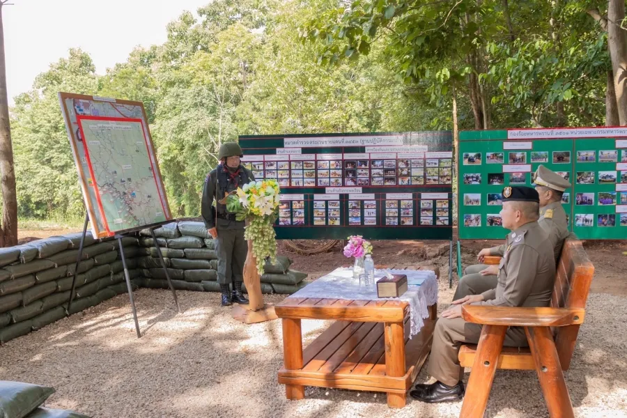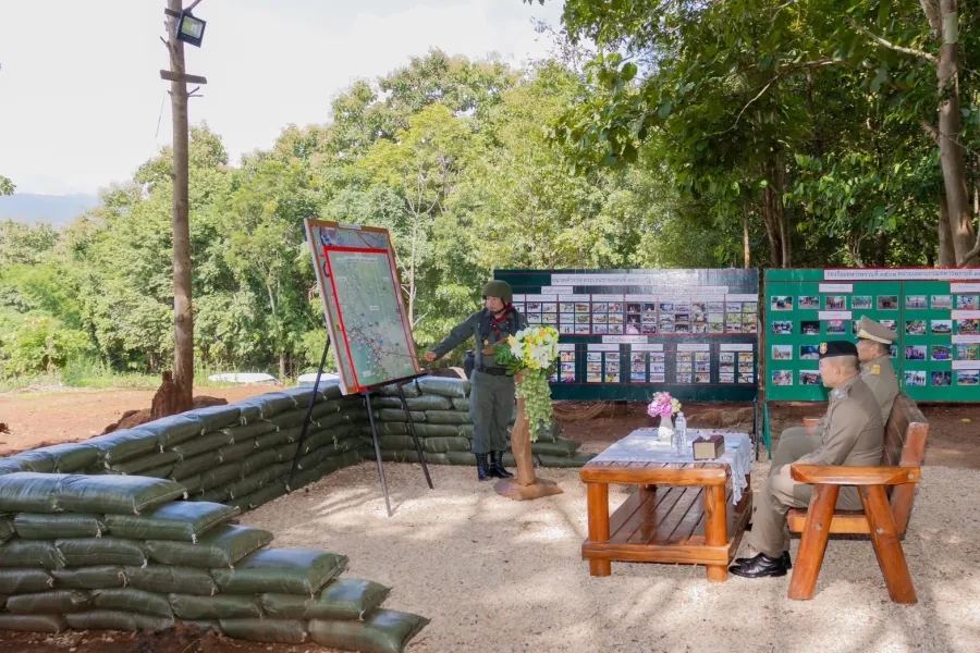 พร้อมทั้งได้เข้ารับฟัง การบรรยายสรุปสถานการณ์ และผลการดำเนินงานในพื้นที่รับผิดชอบ ในห้วงที่ผ่านมา โดยมี พ.ต.ท.เอกพล รุณทอง ผบ.ร้อย ตชด.345 เป็นผู้กล่าวรายงาน และบรรยายฯ จากนั้นได้ปลูกต้นไทรย้อยใบแหลม จำนวน 1 ต้น บริเวณหน้าฐานปฏิบัติการฯ