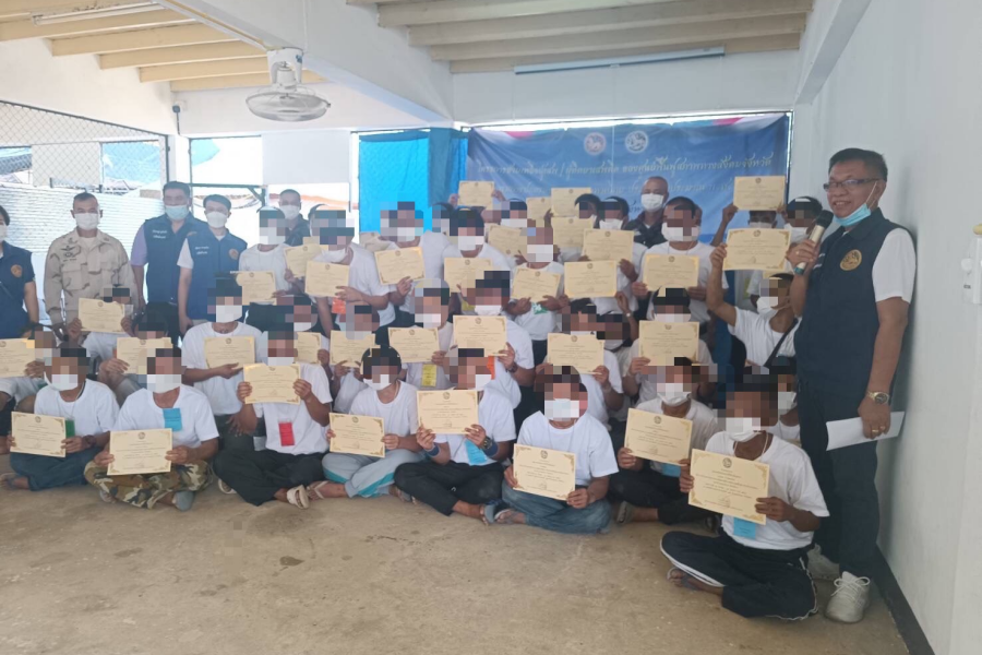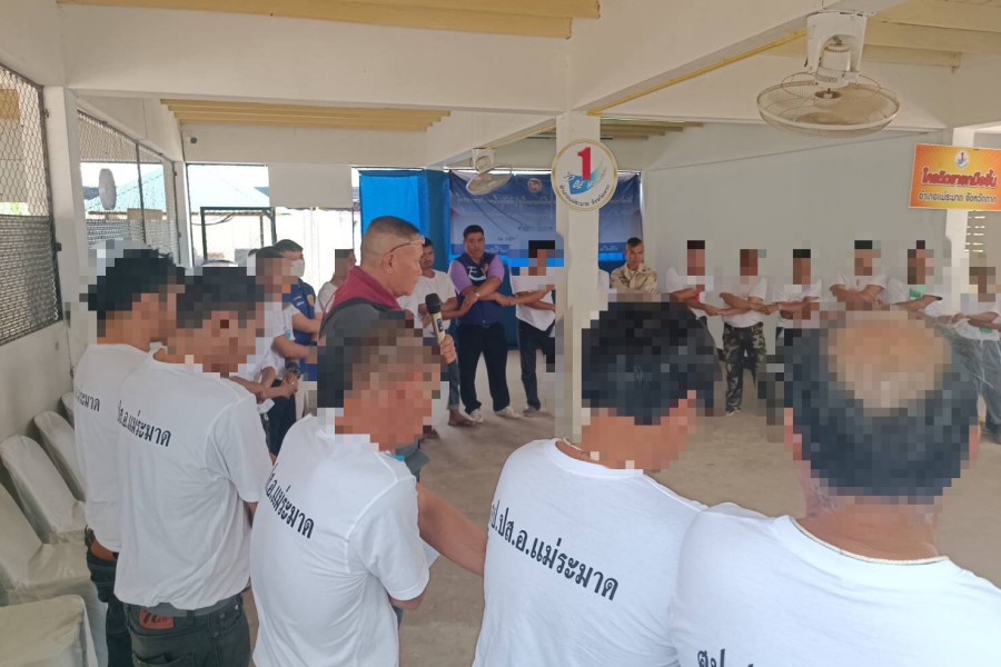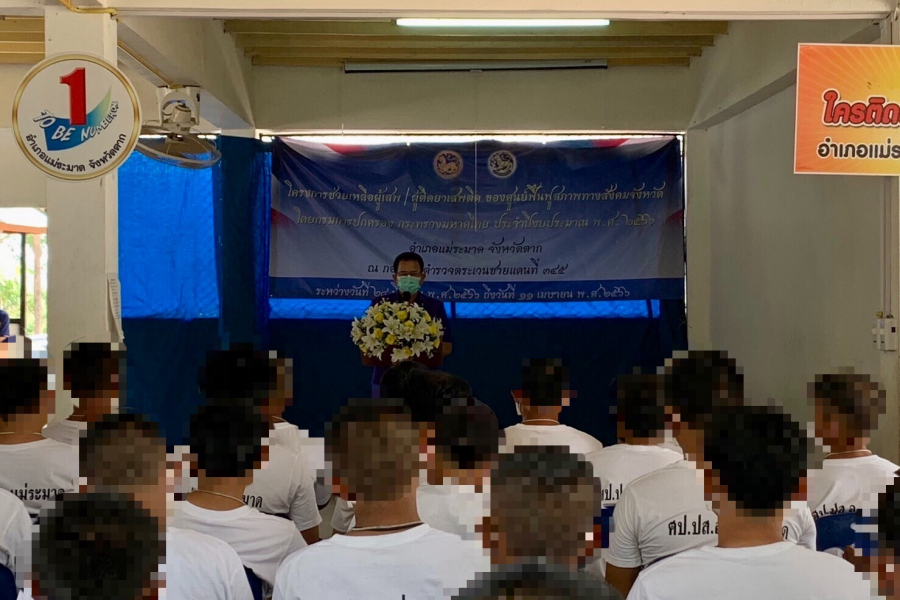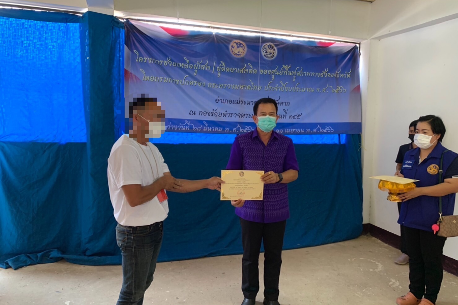 11 เม.ย. 66 เวลา 13.00 น. ร.ต.อ.วสันต์ จันทมาลา รองฯ รรท. ผบ.ร้อย ตชด.345 พร้อม กพ. เข้าร่วมเป็นเกียรติในพิธีปิดการอบรม “โครงการช่วยเหลือผู้เสพ/ผู้ติดยาเสพติด ของศูนย์ฟื้นฟูสภาพทางสังคมจังหวัด ประจำปีงบประมาณ พ.ศ.2566 (สาขาแม่ระมาด)” ณ อาคารสถานกักกันรูปแบบเฉพาะองค์กร(OQ) กองร้อยตำรวจตระเวนชายแดนที่ 345 ต.แม่ระมาด อ.แม่ระมาด จว.ตาก โดยมี นายเลิศศักดิ์ ทับผึ้ง นายอำเภอแม่ระมาด เป็นประธานฯ มีส่วนราชาการในพื้นที่เข้าร่วมพิธีปิด ประมาณ 80 คน (ผู้เข้ารับการบำบัด จำนวน 36 คน)