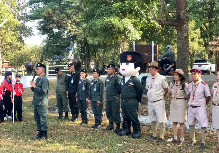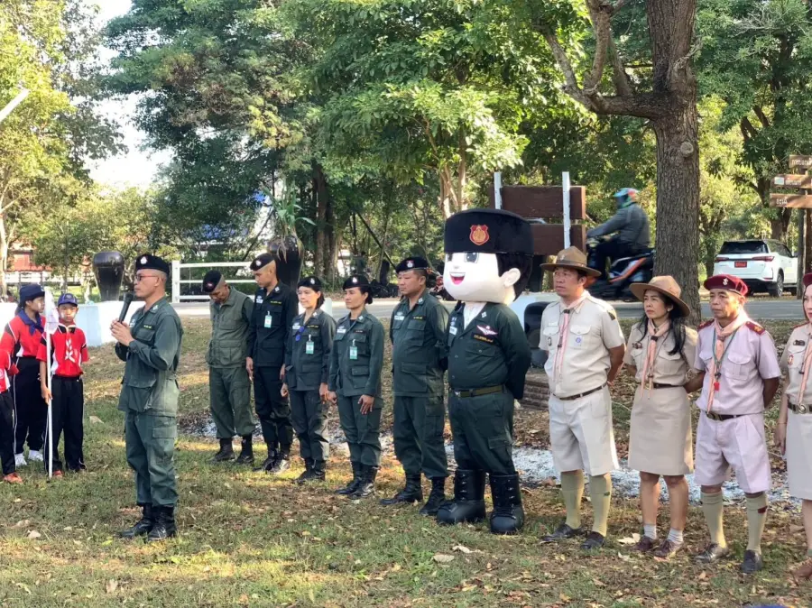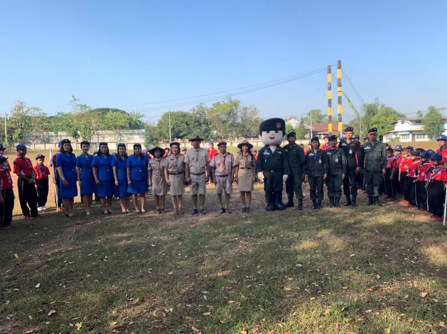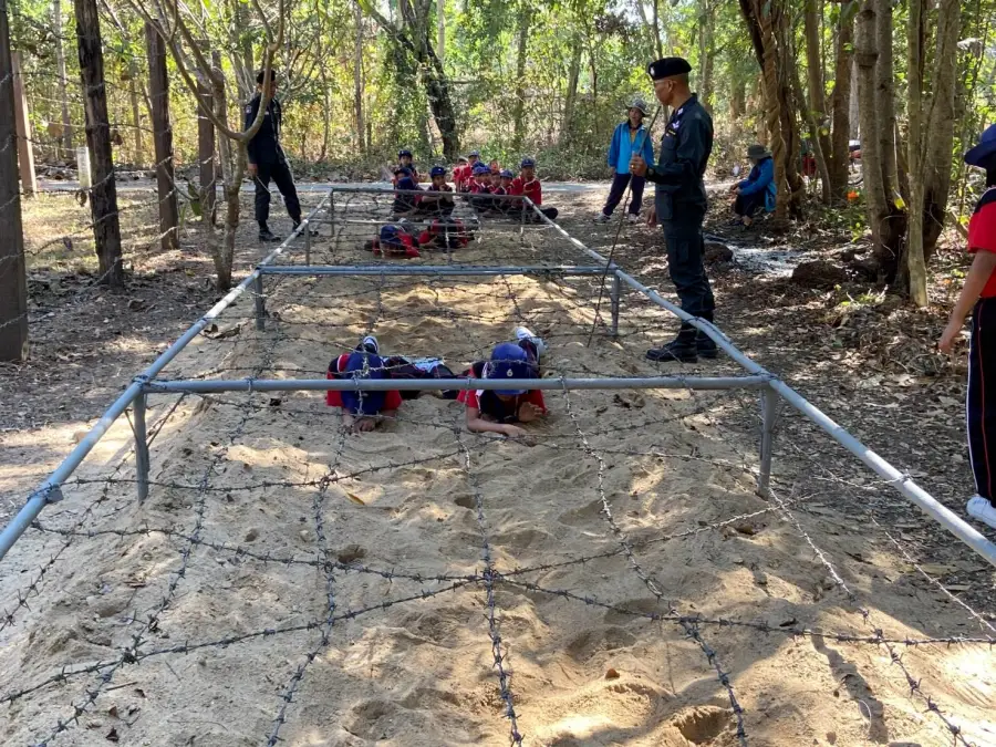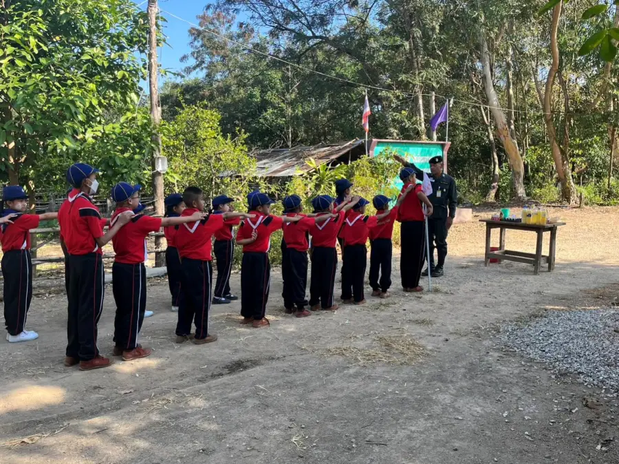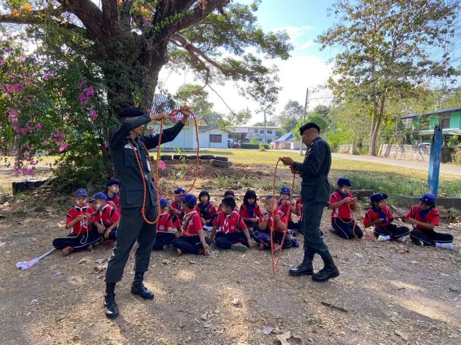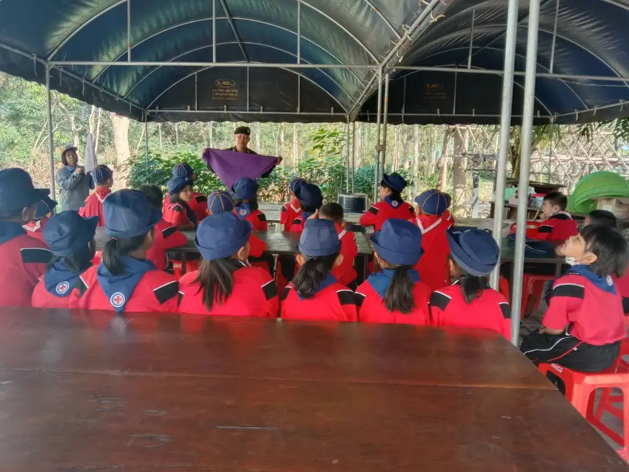 25 ธ.ค.66 เวลา 08.00 – 15.00 น. ว่าที่ พ.ต.ท.อัครพล ฤทธิ์เลื่อน ผบ.ร้อย ตชด.346/ผอ.ศูนย์ฝึก ร้อย ตชด.346 มอบหมายให้ ร.ต.ต.ยงยุทธ มณฑาแดง รอง สว.(ป) กก.ตชด.34 /หน.สายงานกิจการพลเรือนและ วิทยากร/ครูฝึก รวม 25 นาย ดำเนินกิจกรรมค่ายลูกเสือสำรอง ยุวกาชาด ของโรงเรียนบ้านห้วยม่วง ระดับชั้น ป.1-3 จำนวน 125 คน ณ ศูนย์ฝึกลูกเสือ-เนตรนารี ยุวกาชาด นักศึกษาวิชาทหารและเสริมสร้างศักยภาพเจ้าหน้าที่ด้านความมั่นคงชายแดนในพื้นที่ 5 อำเภอชายแดนจังหวัดตาก ร้อย ตชด.346 โดยมี นายทศพล พรมดี ผอ.รร.บ.ห้วยม่วง และคณะครูร่วมกิจกรรม 10 นาย โดยภาคเช้า มีกิจกรรมนันทนาการหน้าเสือและเรียนรู้ตามฐานการเรียนรู้ จำนวน 5 ฐาน (ระเบียบแถวชิด,การปฐมพยาบาลเบื้องต้น, การดำรงชีพในป่า,เงื่อนเชือกและการทำปุ๋ยจุลินทรีย์ ) ภาคบ่ายเรียนรู้ตามฐานผจญภัย จำนวน 5 ฐาน (ฐานตะข่ายเชือก, ฐานลิงอุรังอุตัง, ฐานทาร์ซานน้อย, ฐานห่วงสัมพันธ์และฐานลอดลวดหนาม)