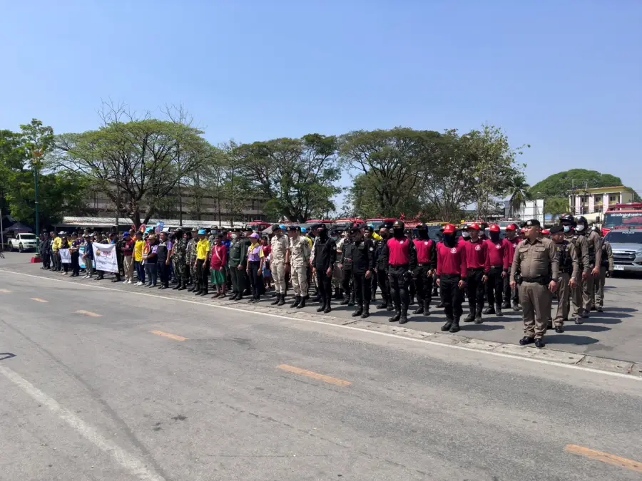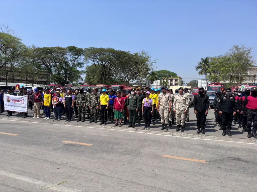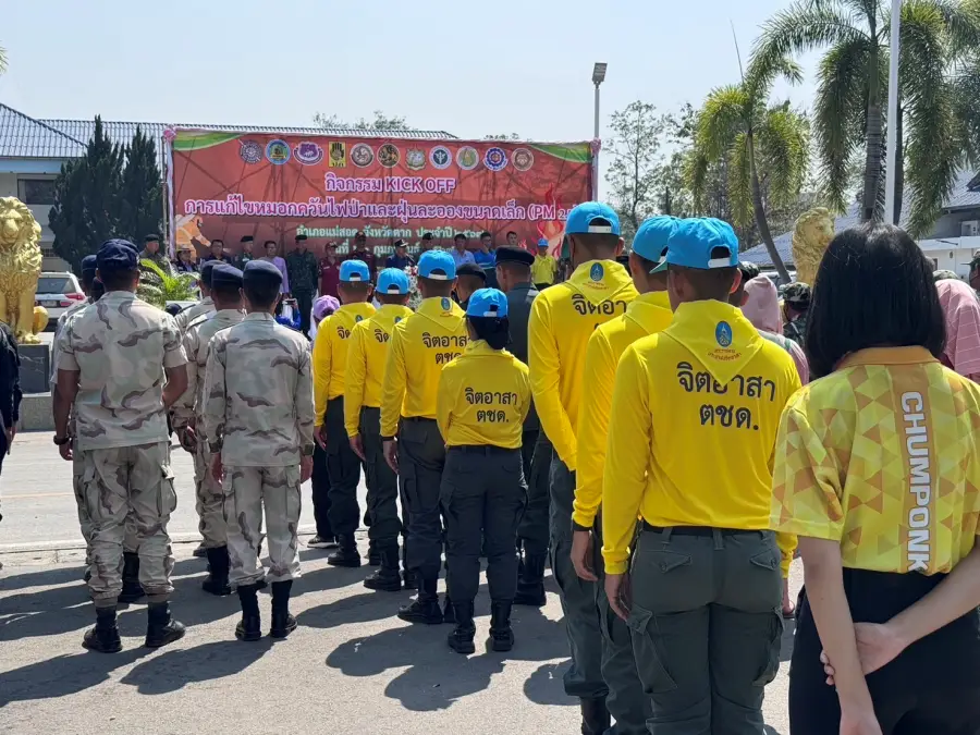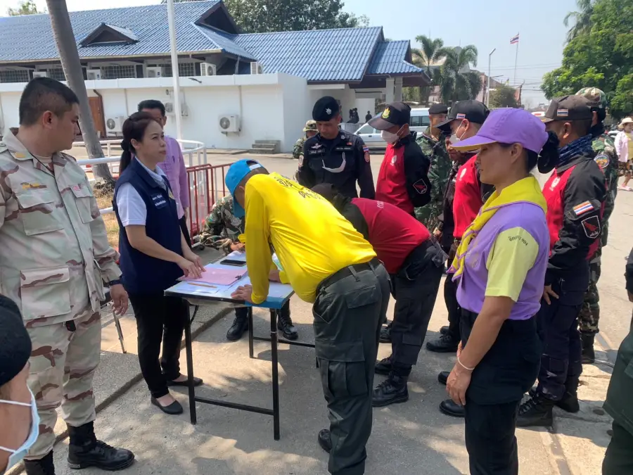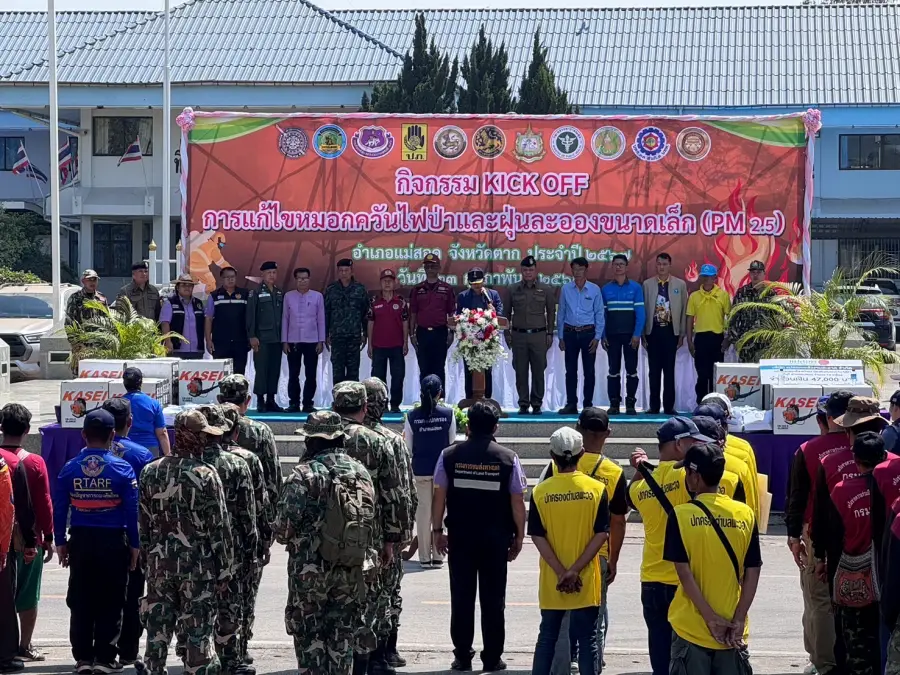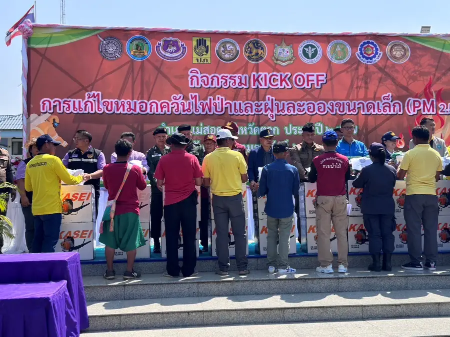 23 ก.พ.67 เวลา 12.30 น. ร.ต.อ.สุรวิช คุรุเจริญ รอง สว.(ป.)กก.ตชด.34 พร้อมข้าราชการตำรวจจิตอาสา ร้อย ตชด.346 รวม 18 นาย ร่วมกิจกรรม KICK OFF การแก้ไขปัญหาหมอกควัน ไฟป่าและฝุ่นละอองขนาดเล็ก (PM 2.5) ประจำปี 2567 บริเวณลานหน้าที่ว่าการอำเภอแม่สอด อ.แม่สอด จ.ตาก โดยมี นายสัญญา เพชรเศษ นายอำเภอแม่สอด เป็นประธาน เพื่อเป็นการรณรงค์ ประชาสัมพันธ์และทำความเข้าใจกับประชาชนในพื้นที่ อำเภอแม่สอด จังหวัดตาก ให้ตระหนักและเห็นความสำคัญในการแก้ไขปัญหาหมอกควัน ไฟป่าและฝุ่นละอองขนาดเล็ก (PM 2.5) มีหน่วยงานส่วนราชการ ตำรวจ ทหาร องค์กรปกครองส่วนท้องถิ่น ภาคเอกชนและประชาชนร่วมกิจกรรม ประมาณ 250 คน