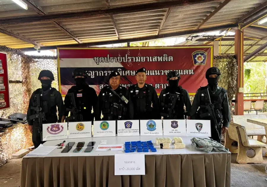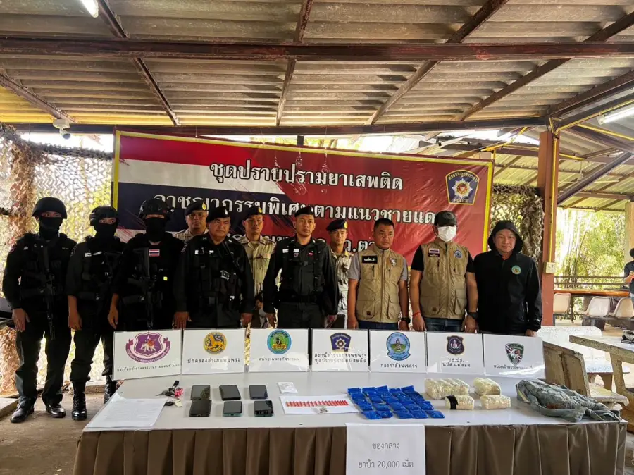 พร้อมด้วยของกลาง ดังนี้ - ยาเสพติดมห้โทษประเภท 1(ยาบ้า) ชนิดกลมแบน จำนวนยาบ้าทั้งหมด ประมาณ 20,000 เม็ด