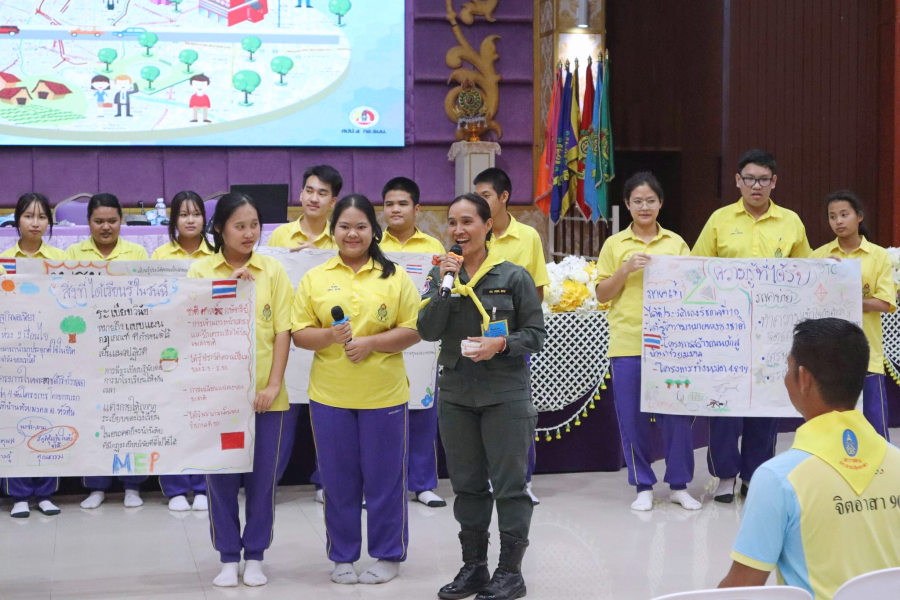 19 มิ.ย.68 เวลา 08.30 น. ด.ต.หญิงนันทนา คีรีเกริกก้อง จิตอาสา904 ปฏิบัติหน้าที่ จิตอาสาบรรยาย หัวข้อเรื่อง “สถาบันพระมหากษัตริย์กับประเทศไทย/หลักปรัชญาเศรษฐกิจพอเพียง / จิตอาสาพัฒนาและกิจกรรมส่งเสริมคุณธรรม และจริยธรรม ให้กับ นักเรียนชั้น ม.5 รร.สรรพวิทยาคม จำนวน 473 คน ตามโครงการพัฒนาคุณธรรมจริยธรรมและระเบียบวินัยตตามหลักปรัชญาของเศรษฐกิจพอเพียง โดยมี นางนารินทร์ โทนปั่น รองผู้อำนวยการโรงเรียนสรรพวิทยาคม เป็นประธานในพิ