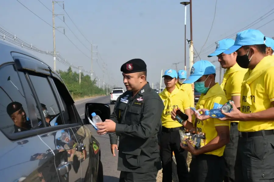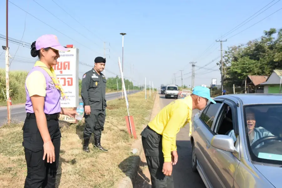 31 ธ.ค.66 เวลา 09.00 – 10.30 น. ว่าที่ พ.ต.ท.อัครพล ฤทธิ์เลื่อน ผบ.ร้อย ตชด.346 พร้อมข้าราชการตำรวจจิตอาสา รวม 27 นาย ได้อำนวยความสะดวกและบริการเครื่องดื่มให้กับประชาชนที่สัญจรไปมาเพื่อป้องกันและลดอุบัติเหตุทางถนน “ชีวิตวิถีใหม่ ขับขี่ปลอดภัยไร้อุบัติเหตุ” และประชาสัมพันธ์การป้องกันการเกิดอุบัติเหตุในห้วงเทศกาลปีใหม่ 2567 บริเวณ หน้าป้อม ชฝต.บ.แม่กื้ดสามท่าใหม่ ต.แม่กาษา อ.แม่สอด จ.ตาก