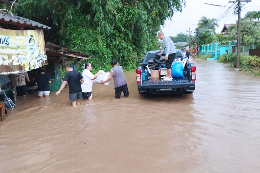 ร้อย ตชด.346 : ช่วยขนย้ายสิ่งของและกรอกกระสอบทรายกั้นน้ำ ให้กับประชาชน ต.แม่ตาว อ.แม่สอด