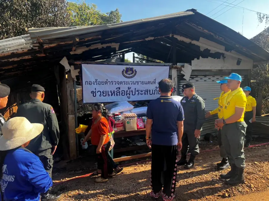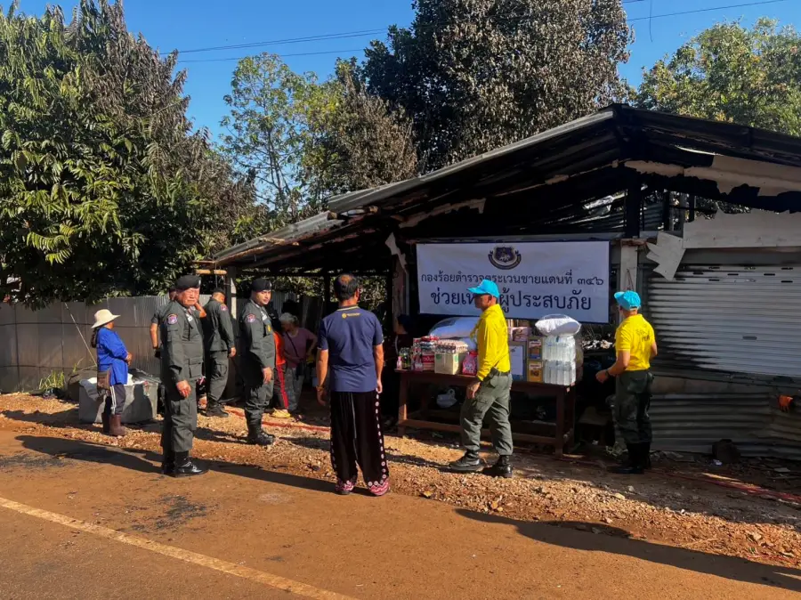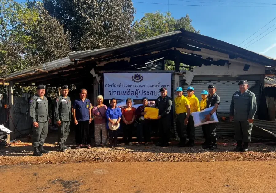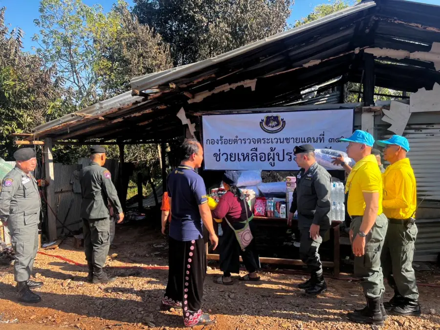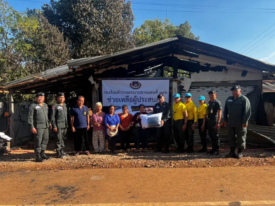 26 ธ.ค.66 เวลา 15.10 – 16.20 น. ว่าที่ พ.ต.ท.อัครพล ฤทธิ์เลื่อน ผบ.ร้อย ตชด.346 พร้อม กพ.ชฝต.บ.เสรีราษฎร์ใหม่และข้าราชการตำรวจจิตอาสา รวม 10 นาย ได้นำสิ่งของอุปโภค-บริโภค รวม 22 รายการ มอบให้กับ นายเงี๋ยจิ้ง แซ่ม้า อายุ 34 ปี บ้านเลขที่ 22 ม.11 บ.ใหม่ดินแดง ต.คีรีราษฎร์ อ.พบพระ จว.ตาก MU 773257 ที่เกิดเหตุเพลิงไหม้บ้าน เมื่อ 251400 ธ.ค.66 ได้รับความเสียหายทั้งหลัง มีผู้พักอาศัยจำนวน 6 คน (ชาย 4 คน หญิง 2 คน) เพื่อเป็นการบรรเทาทุกข์ในขั้นต้น พร้อมทั้งได้ให้กำลังใจ