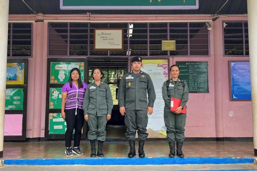 14 มิ.ย.67 เวลา 10.00 – 12.00 น. ว่าที่ พ.ต.ท.อัครพล ฤทธิ์เลื่อน ผบ.ร้อย ตชด.346 พร้อม กพ.รวม 3 นาย ได้เดินทางไปตรวจเยี่ยม รร.ตชด.ท่านผู้หญิงทวี มณีนุตร บ.ขุนห้วยแม่สอด ม.6 ต.พระธาตุผาแดง อ.แม่สอด จว.ตาก พบ ร.ต.ต.หญิง ชญานิษฐ์ นาคทอง ผู้ช่วยครูใหญ่ฯและคณะครูให้การต้อนรับ ได้เยี่ยมชมการเรียนการสอนช่วงเปิดภาคเรียนที่ 1 ปีการศึกษา 2567 และติดตามงานในพระราชดำริฯ 8 โครงการและการดำเนินงานตาม กพด.ระยะที่ 5 ตาม 8 เป้าหมาย 34 ตัวชี้วัด ได้ให้คำแนะนำ คณะครูดูแลเกี่ยวกับการเรียนการสอน การปรับสภาพภูมิทัศน์ ให้ระมัดระวังเกี่ยวกับโรคระบาดในที่มาในช่วงฤดูฝน เข่น โรคโควิด–19 ,โรคไข้เลือดออก,ไข้มาลาเรีย ฯ ฝากคุณครูช่วยกันดูแลความสะอาดบริเวณ รร. และได้มอบของตรวจเยี่ยมให้คณะครู เพื่อเป็นขวัญและกำลังใจในการปฏิบัติหน้าที่