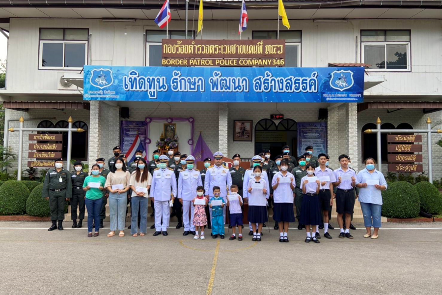 2 มิ.ย66 เวลา 07.30-09.00 น. พ.ต.ต.อัครพล ฤทธิ์เลื่อน ผบ.ร้อย ตชด.346 พร้อม ขรก.ตร.จำนวน 35 นาย ร่วมพิธีลงนามถวายพระพรสมเด็จพระนางเจ้าสุทิดา พัชรสุธาพิมลลักษณ พระบรมราชินี เนื่องในโอกาสวันเฉลิมพระชนมพรรษา วันที่ 3 มิ.ย.66 และมอบทุนการศึกษาของสหกรณ์ออมทรัพย์ กก.ตชด.34 ประจำปี 2566 แก่บุตร-ธิดา ข้าราชการตำรวจ จำนวน 57 ทุน เป็นเงิน 52,200 บาท