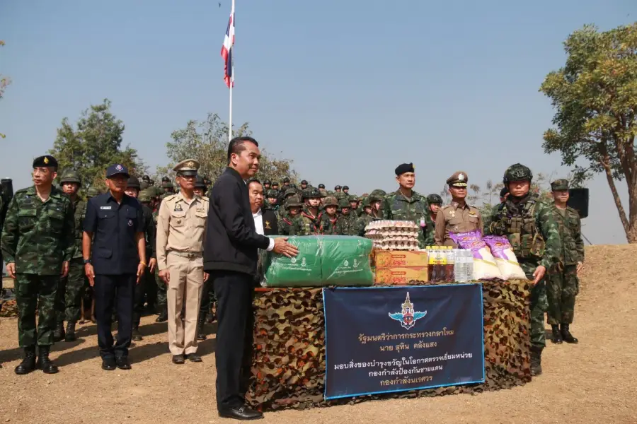 23 ก.พ.67 เวลา 06.30 น.ว่าที่ พ.ต.ท.อัครพล ฤทธิ์เลื่อน ผบ.ร้อย ตชด.346 พร้อมกพ.รวม 21 นาย ร่วมให้การต้อนรับ นายสุทิน คลังแสง รมว.กลาโหม พร้อมคณะ ที่เดินทางมาตรวจเยี่ยมหน่วยในพื้นที่ ทภ.3/ศปก.ทภ.3 และมอบสิ่งของบำรุงขวัญให้กับ กกล.ป้องกันชายแดน ของ กกล.นเรศวร ณ ฐานฯเสกสรรค์ บ.มหาวัน ม.1 ต.มหาวัน อ.แม่สอด จว.ตาก MU 561317 โดยมี ผู้บังคับหน่วยขึ้นตรงและหน่วยขึ้นควบคุมทางยุทธการให้การต้อนรับ