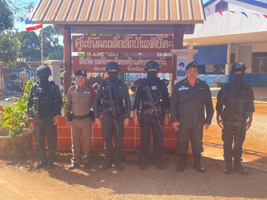 1 ม.ค.67 เวลา 12.30 น. ว่าที่ พ.ต.ท.อัครพล ฤทธิ์เลื่อน ผบ.ร้อย ตชด.346 , ร.ต.ท.ยงยุทธ เตสะเส็ด หน.ฉก.หัสดินทร์ พร้อม กพ.รวม 7 นาย ปฏิบัติภารกิจรักษาความปลอดภัย นายสมศักดิ์ เทพสุทิน รองนายกรัฐมนตรี พร้อมคณะ ที่เดินทางมาปฏิบัติภารกิจในพื้นที่ ณ ศูนย์พัฒนาเด็กเล็กบ้านเจดีย์โค๊ะ ม.6 ต.มหาวัน อ.แม่สอด จ.ตาก