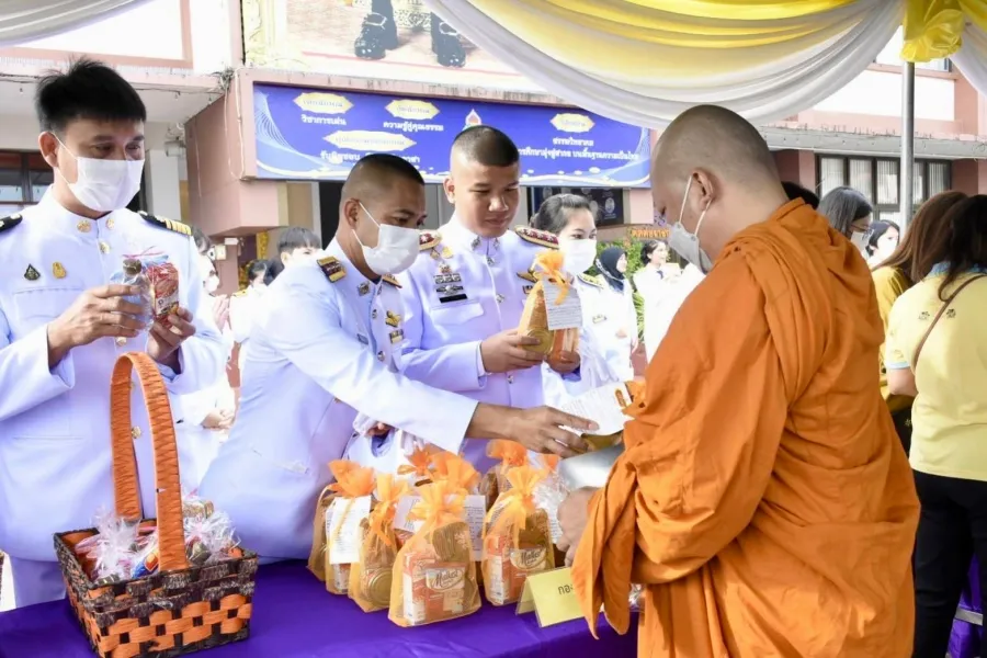 13 ต.ค.66 เวลา 07.00 – 09.30 น. พ.ต.ต.อัครพล ฤทธิ์เลื่อน ผบ.ร้อย ตชด.346 , ร.ต.อ.ณรงวิทย์ บุญสงค์ รอง ผบ.ร้อย ตชด.346 พร้อมกำลังพล จำนวน 6 นาย เข้าร่วมพิธีทำบุญตักบาตร ถวายพระราชกุศลและพิธีวางพวงมาลา เนื่องใน“วันนวมินทรมหาราช“ เพื่อน้อมรำลึกถึงพระมหากรุณาธิคุณพระบาทสมเด็จพระบรมชนการธิเบศร มหาภูมิพลอดุลยเดชมหาราช บรมนาถบพิตร 13 ตุลาคม 2566 ณ หอประชุม รร.สรรพวิทยาคม อ.แม่สอด จ.ตาก มีหน่วยงานภาครัฐและเอกชนเข้าร่วมพิธี จำนวน 200 คน โดยมี นายสมชาย ไตรทิพย์ชาติสกุล นายอำเภอแม่สอด เป็นประธานในพิธี