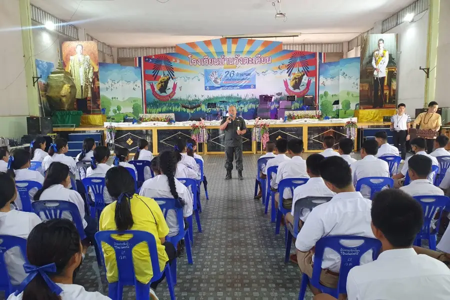ร้อย ตชด.346 : วิทยากรบรรยายให้ความรู้ตามโครงการสถานศึกษาสีขาวปลอดยาเสพติดและอบายมุข รร.บ้านวังตะเคียน อ.แม่สอด