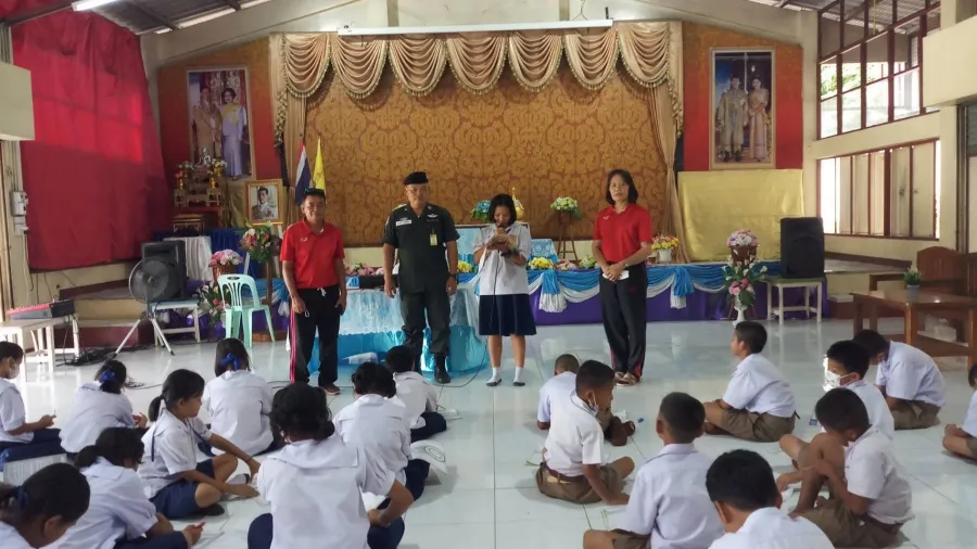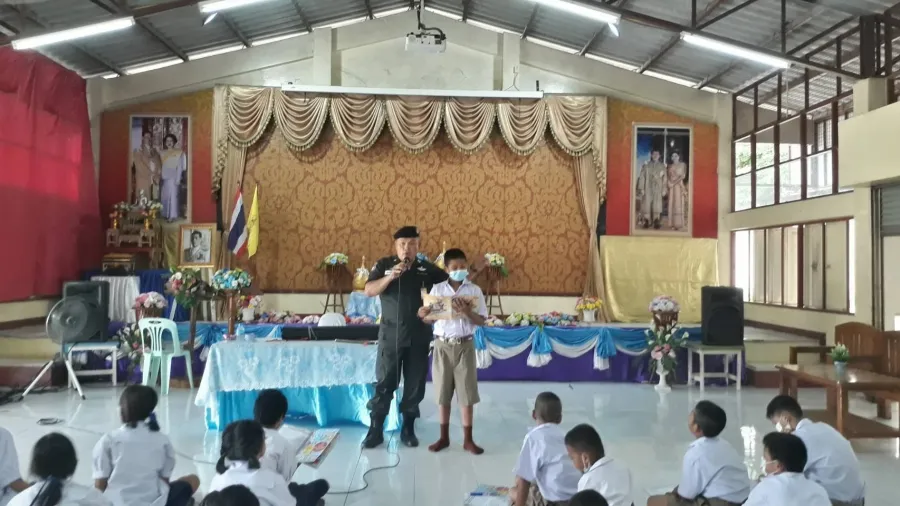17 ส.ค. 66 เวลา 13.30 – 15.30 น. ร.ต.ต.อภิรักษ์ คำมงคุณ รอง สว.(ป)กก.ตชด.34 วิทยากรแดร์ ได้เข้าดำเนินงานโครงการ การศึกษาเพื่อต่อต้านการใช้ยาเสพติดในเด็กนักเรียน ณ รร.บ้านห้วยม่วง ม.2 ต.ท่าสายลวด อ.แม่สอด จว.ตาก ระดับ ชั้น ป.4-6 จำนวน 80 คน ในบทเรียนที่ 7″การรวมทุกสิ่งเข้าด้วยกัน” บทที่8″การกระทำของแต่ละคน” โดยมีครูประจำชั้นร่วมสังเกตการณ์