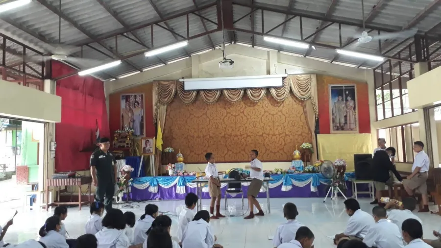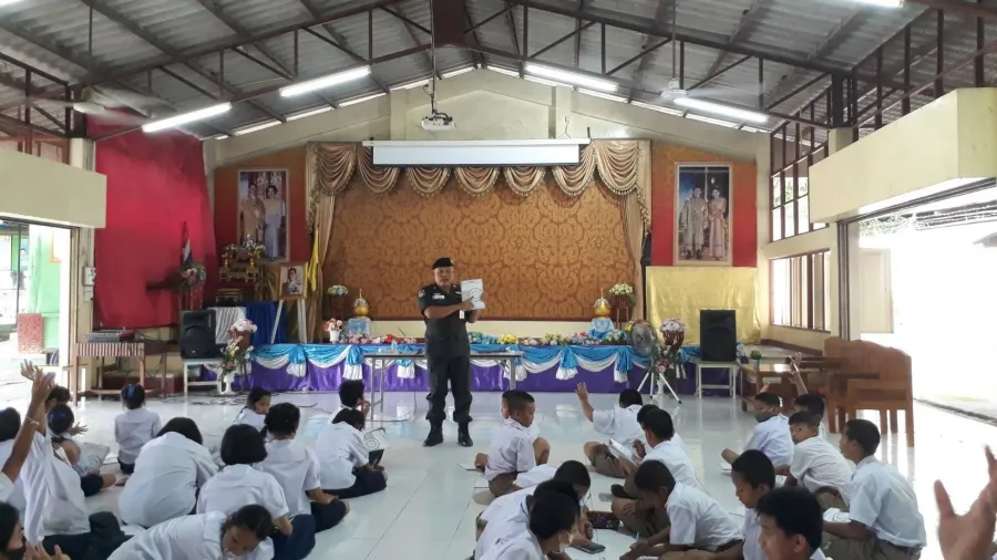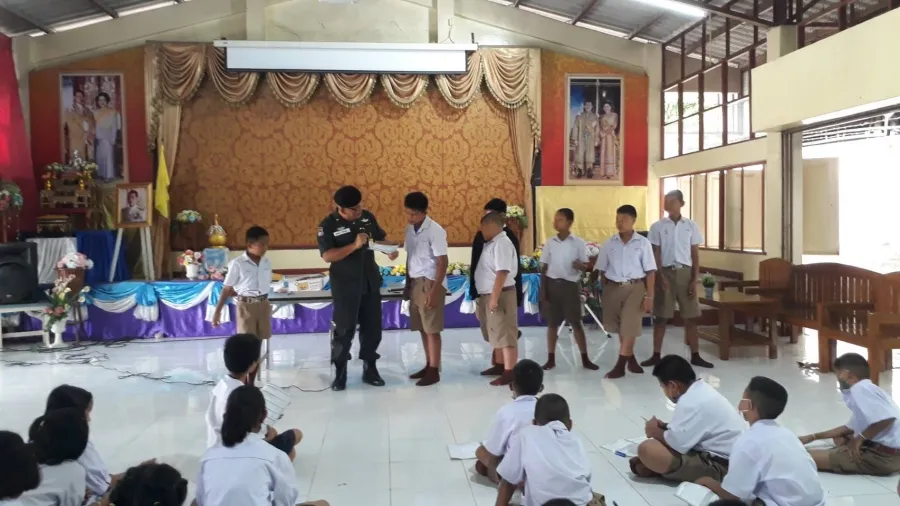 24 ส.ค. 66 เวลา 13.30 – 15.30 น. ร.ต.ต.อภิรักษ์ คำมงคุณ รอง สว.(ป)กก.ตชด.34 วิทยากรแดร์ ได้เข้าดำเนินการโครงการการศึกษาเพื่อต่อต้านการใช้ยาเสพติดในเด็กนักเรียน ณ รร.บ้านห้วยม่วง ม.2 ต.ท่าสายลวด อ.แม่สอด จว.ตาก ระดับชั้น ป.4-6 จำนวน 80 คน ในบทเรียนที่ 9″ฝึกฝึกและฝึก” บทที่10″จิตอาสา” มีครูประจำชั้นร่วมสังเกตการณ์