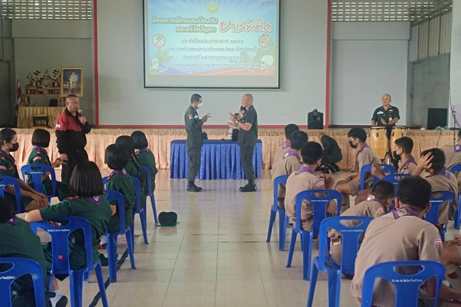 15 ก.ค.66 เวลา 09.00 น. ร.ต.ต.บัญญธิป แช่มทอง รอง สว.(ป) กก.ตชด.34 พร้อมชุดวิทยากร รวม 5 นาย เป็นวิทยากรให้ความรู้เกี่ยวกับยาเสพติดให้โทษและกิจกรรมนันทนาการ ณ โรงเรียนชุมชนบ้านแม่ตาวกลางมิตรภาพที่ 26 ม.5 ต.แม่ตาว อ.แม่สอด จว.ตาก ตามโครงการฝึกอบรมป้องกันและแก้ไขปัญหายาเสพติด ประจำปี 2566 ของเทศบาลตำบลแม่ตาว โดยมี นายศรศักดิ์ ดวงมณี นายกเทศมนตรีตำบลแม่ตาว เป็นประธาน มีคณะครู นักเรียน และ จนท.เทศบาลตำบลแม่ตาว ร่วมกิจกรรมประมาณ 80 คน