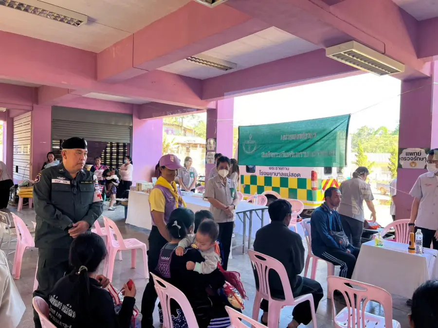 12 ม.ค.67 เวลา 07.00 – 13.35 น. ด.ต.อานนท์ เฮิงโม ทนท.จนท.พยาบาล ร้อย ตชด.346 พร้อม ขรก.ตร.จิตอาสา 904 รวม 3 นาย ออก ปบ.ภารกิจร่วมหน่วย แพทย์ พอ.สว.รพ. แม่สอด ที่บ้านธงชัย ม.7 ต.ด่านแม่ละเมา อ. แม่สอด จ.ตาก โดยมีนาง ครวญคิด เปี้ยน้ำล้อม จนท.สาธารณสุขชำนาญงาน เป็นหน.คณะ ร่วมกับ จนท.รพ.สต.ด่านแม่ละเมา สสจ.ตาก และจนท.อสม.ใน พท. ให้บริการตรวจรักษาโรคทั่วไปและจัดกิจกรรมวันเด็ก มี ปชช.และเด็ก นร.เดินทางมารับบริการ 250 คน