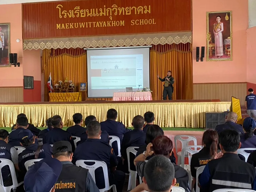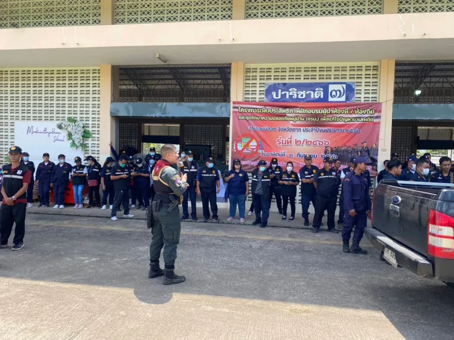 3 ก.ย.66 เวลา 10.00 – 16.00 น. ร.ต.ท.อธิบดี อภิวัฒน์วาจา ผบ.มว.ตชด.3463 พร้อม กพ.ฉก.หัสดิน รวม 5 นาย ได้เป็นวิทยากร การตั้งด่านตรวจ การสืบสวน ตรวจค้นยาเสพติด/วิธีการสืบสวนหาข่าว เกี่ยวกับยาเสพติด ตามโครงการเพิ่มประสิทธิภาพการฝึกอบรมผู้นำท้องที่/ท้องถิ่นและชุดรักษาความปลอดภัยหมู่บ้าน (ชรบ.) เพื่อแก้ไขยาเสพติดอำเภอแม่สอด จังหวัดตาก ประจำปี 2566 รุ่นที่ 2 ณ หอประชุมโรงเรียนแม่กุวิทยาคม ต.แม่กุ อ.แม่สอด จว.ตาก โดยมี นายสมชาย ไตรทิพย์ชาติสกุล นายอำเภอแม่สอด เป็นประธาน ผู้เข้ารับการฝึกอบรมจาก ต.แม่กาษา,ต.แม่ปะ,ต,ท่าสายลวด,ต.พระธาตุผาแดง,ต.แม่ตาวและ ต.มหาวัน จำนวน 384 คน