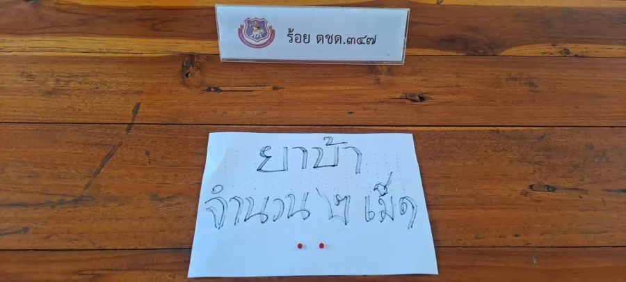 - ยาเสพติดให้โทษประเภท 1 เมทแอมเฟตามีน (ยาบ้า) ตัวอักษร WY อีกด้านผิวเรียบ สีแดง จำนว 2 เม็ด