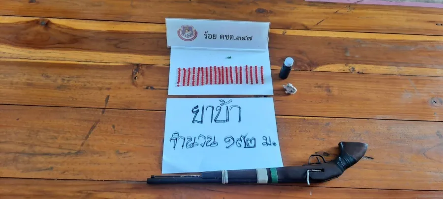 - ปืนสั่นประกอบขึ้นเอง(ปืนแก็ป)ไม่พบหมายเลขทะเบียน จำนวน 1 กระบอก
