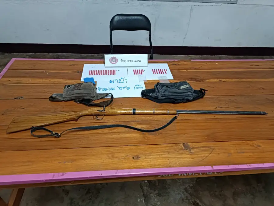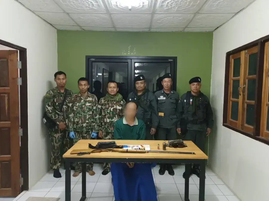 23 ก.พ. 2567 เวลา 02.30 น. ร.ต.อ.บุญเชิด มากรักชาติ ผบ.มว.กก.ตชด.34, ร.ต.ท.สุรสิทธิ์ อัชณานภาลัย พร้อม กพ.ชุดเคลื่อนที่เร็ว ร้อย ตชด.347 ร่วม จนท.รักษาป่า(พรก.) นำโดย นาย คณากร ต๊ะใจ พนักงานรักษาป่า(พรก.) ออก ลว. ตรวจสอบพื้นที่เขตรักษาพันธุ์สัตว์ป่าบ้านแม่กลองคี ม.3 ต.โมโกร อ.อุ้มผาง จ.ตาก เพื่อป้องกันการลักลอบขนสินค้าหนีภาษี การหลบหนีเข้าเมือง และลักลอบขนยาเสพติด ผลการปฏิบัติพบผู้กระทำผิด 1 ราย