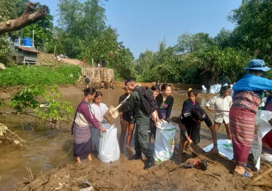 ร้อย ตชด.347 : ทำฝ่ายกันน้ำเพื่อรองรับช่วงฤดูฝน บริเวนฝ่ายบ้านเลตองคุ ต.แม่จัน อ.อุ้มผาง