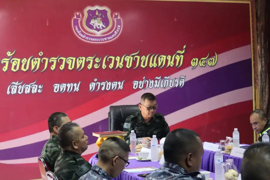 20 มิถุนายน 2567 เวลา 10.30 น. ร.ต.อ.เจษฎา พวงสมบัติ รอง ผบ.ร้อย ตชด.347 พร้อม ขรก.ร้อย ตชด.347 ร่วมให้การต้อนรับ พล.ต.โชคชัย พลสมัคร ผช.หน.บก.ศบท. พร้อมคณะฯ ในการเดินทางตรวจภูมิประเทศและศึกษาดูงาน กกล.ป้องกันชายแดนในพื้นที่ กกล.นเรศวร และร่วมรับฟังบรรยายสรุปสถานการณ์ ณ ห้องประชุมทีลอซู ร้อย ตชด.347 เสร็จภารกิจแต่เวลา 12.30 น. เดินทางปฏิบัติภารกิจในพื้นที่ เหตุการณ์ปกติ