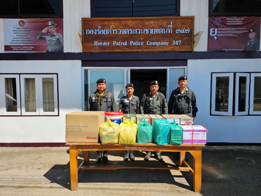 พร้อมให้คำแนะนำในการปฏิบัติหน้าที่ ข้อห่วงใยและมอบสิ่งของเพื่อเป็นการบำรุงขวัญและกำลังใจให้กับ กพ. ในการปฏิบัติหน้าที่ โดยมี ว่าที่ พ.ต.ต.จตุรพร วชิรวิทยากร ผบ.ร้อย ตชด.347 ร่วมคณะตรวจเยี่ยมฯ - เวลา 13.50 น. ตรวจเยี่ยม มว.ตชด.3471 ฐาน ปบ.การ บ้านแม่กลองคี หมู่ 3 ต.โมโกร อ.อุ้มผาง จ.ตาก พบ ร.ต.ท.ปิยมัณฑน์ ภักดีแสงรัตน์ ผบ.มว.ตชด.3471 พร้อม กพ. ใหัการต้อนรับ ทั้งนี้ได้มอบเครื่องอุปโภคบริโภค เพื่อเป็นขวัญและกำลังใจใหัผู้ใต้บังคับบัญชาผู้ปฏิบัติงานในพื้นที่รับผิดชอบ