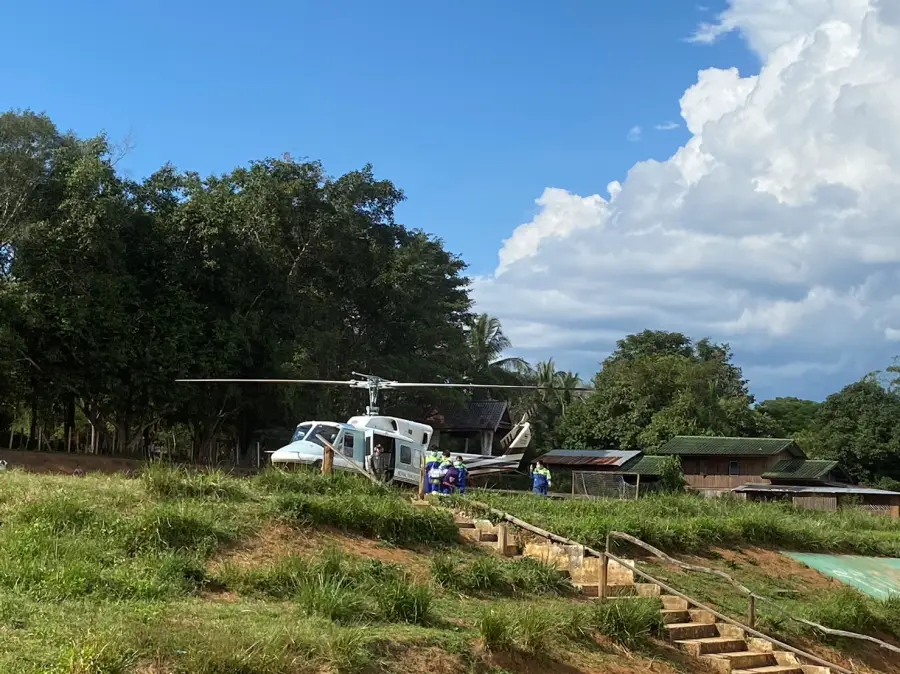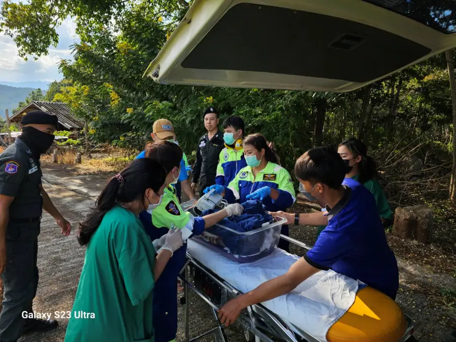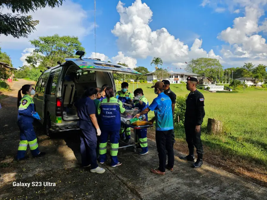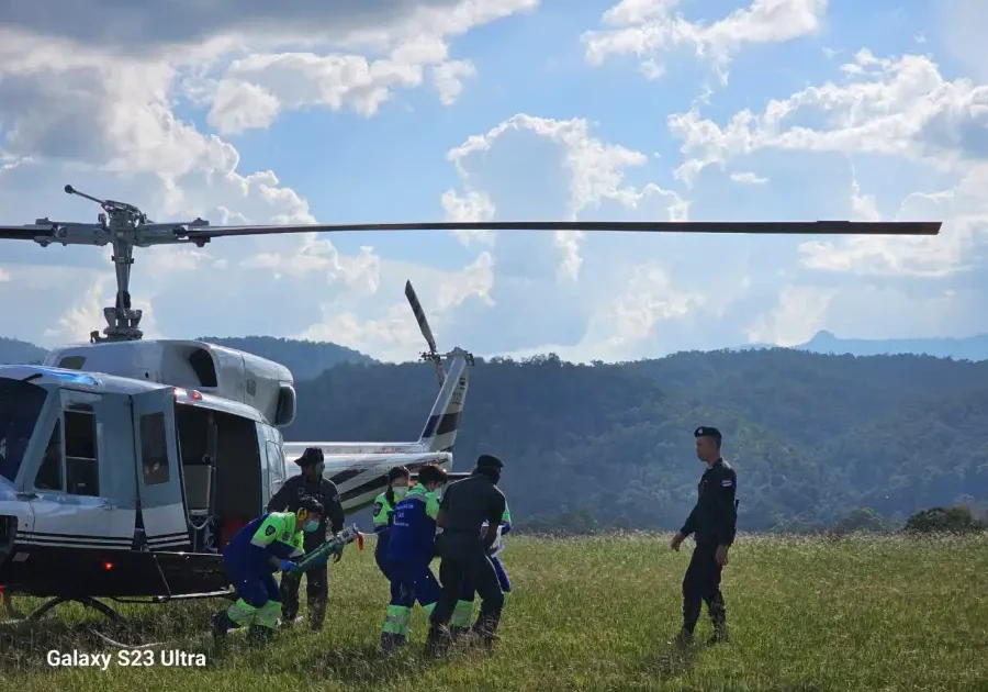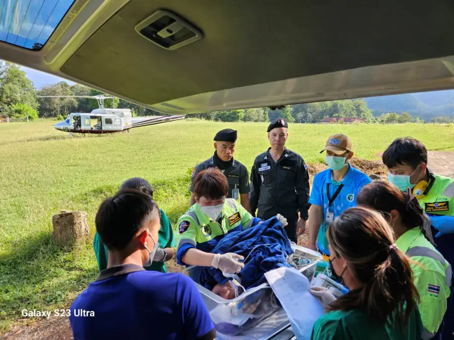 3 พ.ย 2566 เวลา 15.40 น. ร.ต.อ.เจษฎา พวงสมบัติ รอง ผบ.ร้อย รรท.ผบ.ร้อย ตชด.347 พร้อมเจ้าหน้าที่ พยาบาล ร้อย ตชด.347 ให้การสนับสนุนและอำนวยความสะดวกในการส่งต่อผู้ป่วย ด.ญ.กนกพร งามยิ่ง อายุ 5 เดือน มีอาการเกร็ง หายใจไม่สะดวก ต้องได้รับการรักษาโดยด่วน จึงได้ส่งต่อผู้ป่วย ทาง ฮ.ตร.หมายเลข 2222 จาก สุขศาลาบ้านแม่จันทะ ต.แม่จัน อ.อุ้มผาง จว.ตาก มายังสนาม ฮ.ร้อย ตชด.347 เพื่อรับการรักษาต่อที่ โรงพยาบาลอุ้มผาง
