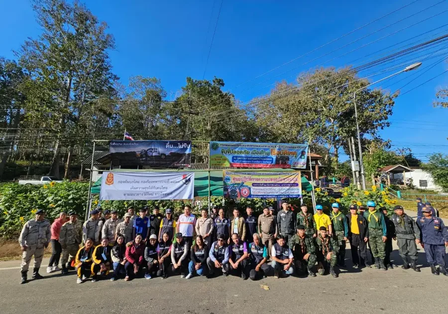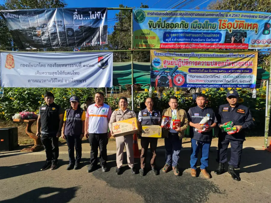 29 ธ.ค.66 เวลา 09.00 น. ร.ต.อ.เจษฎา พวงสมบัติ รอง ผบ.ร้อย ตชด.347 พร้อม กพ. ร่วมกับส่วนราชการในพื้นที่ อ.อุ้มผาง ร่วมพิธีเปิด ศูนย์ปฏิบัติการความปลอดภัยบนท้องถนน ตามโครงการป้องกันและลดอุบัติเหตุทางท้องถนนช่วงเทศกาลปีใหม่ พ.ศ.2567 ณ ถนนสามแยก บ.แม่กลอง ต.อุ้มผาง อ.อุ้มผาง จว.ตาก โดยมี นายเกษม ต๊ะกู ปลัดอำเภออุ้มผาง เป็นประธานในพิธี