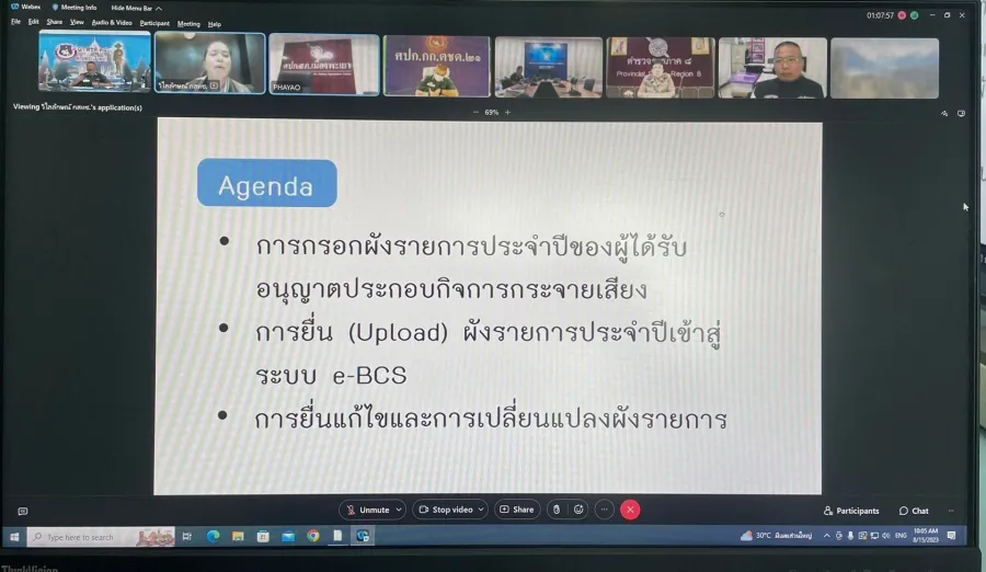 15 ส.ค. 66 เวลา 10.00 น. พ.ต.ต.วิจิตร เชาวลิต สว.ตชด.34 (จอส.) ร่วมประชุมซักซ้อมและทำความเข้าใจเกี่ยวกับการจัดทำผังรายการหลักประจำปี พ.ศ.2567 ผ่านระบบการยื่นคำขอรับอนุญาตทางอิเล็กทรอนิกส์ ในกิจการกระจายเสียงและโทรทัศน์(e-BCS) ณ ห้องประชุม ฉก.กก.ตชด.34 ในระบบการประชุมทางไกลผ่านจอภาพ