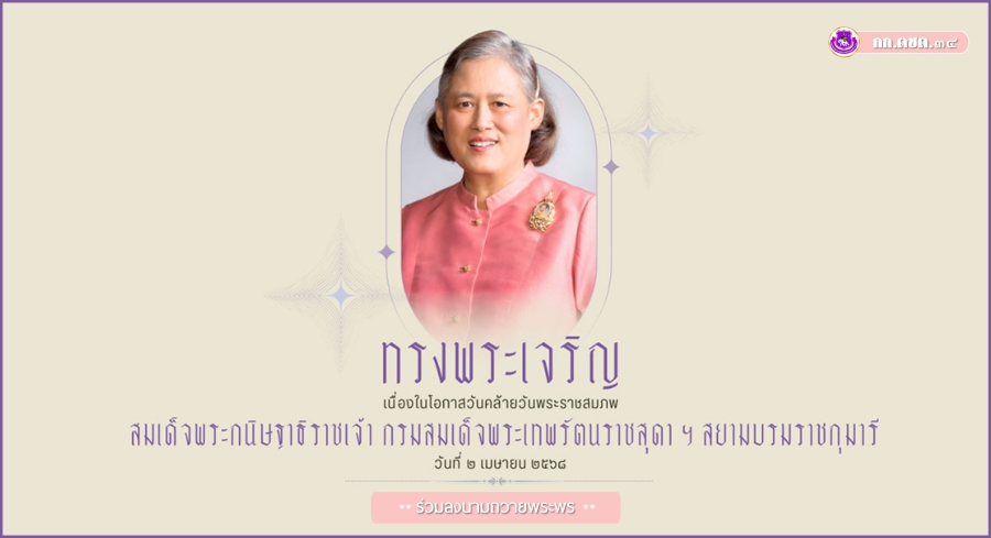 💜💜สำนักพระราชวัง ขอเชิญชวนประชาชนร่วมลงนามถวายพระพร สมเด็จพระกนิษฐาธิราชเจ้า กรมสมเด็จพระเทพรัตนราชสุดา เจ้าฟ้ามหาจักรีสิรินธร มหาวชิราลงกรณวรราชภักดี สิริกิจการิณีพีรยพัฒน รัฐสีมาคุณากรปิยชาติ สยามบรมราชกุมารี เนื่องในโอกาสวันคล้ายวันพระราชสมภพ วันที่ 2 เมษายน 2568 ผ่านระบบออนไลน์ ที่เว็บไซต์หน่วยราชการในพระองค์ www.royaloffice.th ระหว่างวันที่ 1 ถึง 3 เมษายน 2568
