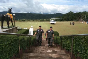 29 ต.ค.67 เวลา 09.08 น. พ.ต.อ.ศุภวัฒน์ ศรีชัยชนะ ผกก.ตชด.34 เดินทางโดย ฮ.ตร. หมายเลข 2222 มายังสนามบ