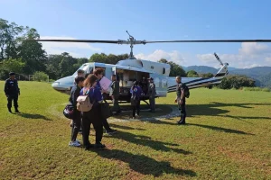 29 ต.ค.67 พ.ต.อ.ศุภวัฒน์ ศรีชัยชนะ ผกก.ตชด.34 เดินทางโดย ฮ.ตร. หมายเลข 2222 นำคุณสุภางค์ มาลานีญา ผอ