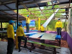 ร้อย ตชด.344 : จิตอาสา ซ่อมแซมหลังคาโรงอาหาร รร.ตชด.จุฬา-ธรรมศาสตร์ 3 ต.แม่หละ อ.ท่าสองยาง