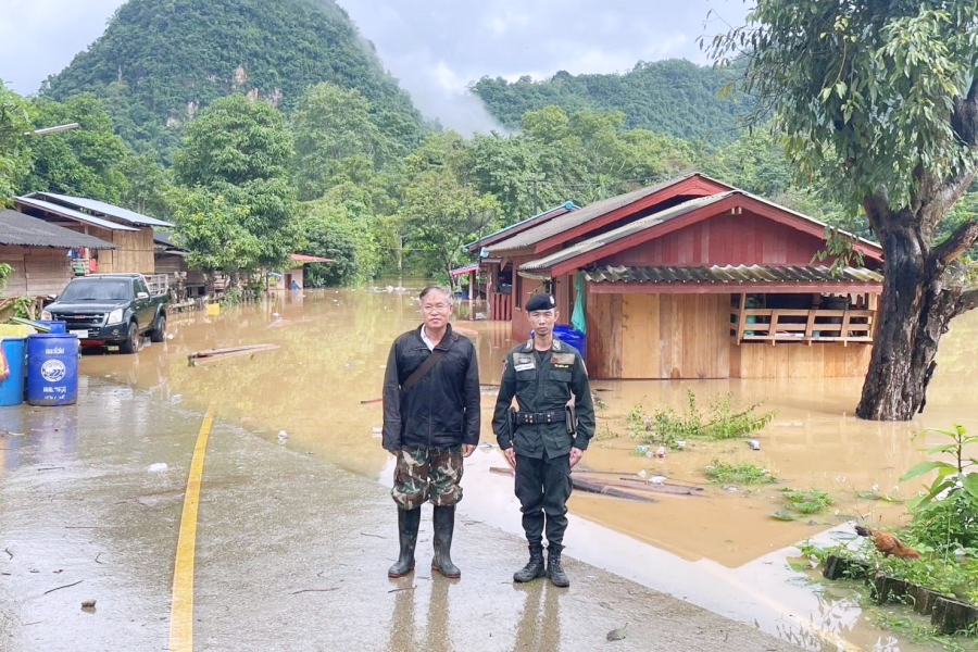 24 ก.ค.68 เวลา 08.30 น. มว.ตชด.3444 จัด กพ.ออกสำรวจระดับน้ำ พบ ผญบ. และ ปชช. บริเวณหน้าถ้ำแม่อุสุ บ้