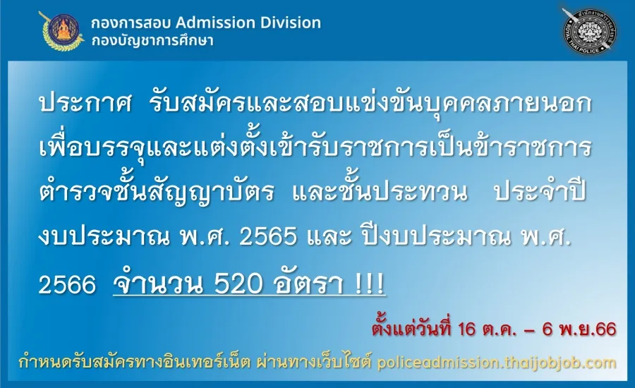 ประกาศรับสมัครและสอบแข่งขันบุคคลภายนอกเพื่อบรรจุและแต่งตั้งเข้ารับราชการเป็นข้าราชการตำรวจชั้นสัญญาบ