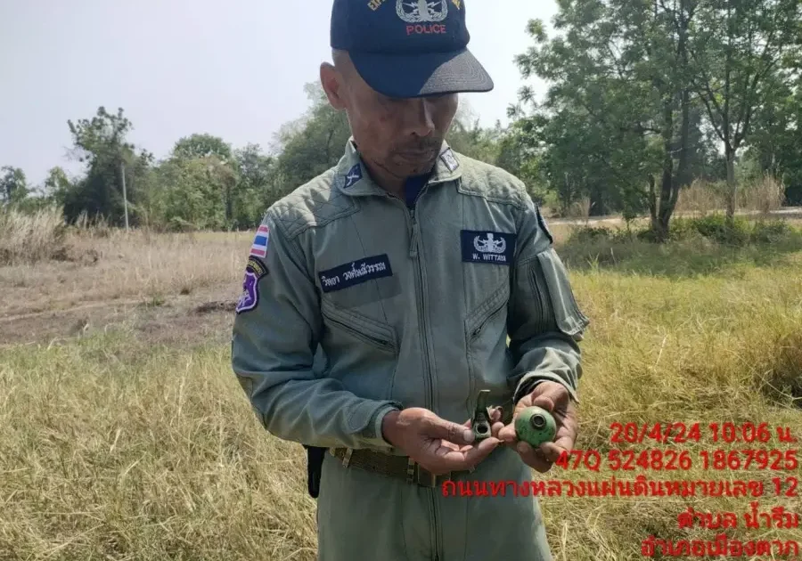20 เม.ย.67 เวลา 08.00 น. สายงานเก็บกู้ฯ ได้รับแจ้งจาก พ.ต.ท.คมกฤษ ศรชัย สว.กก.ตชด.34 ว่าพบวัตถุต้องสงสัยคล้ายระเบิด ถูกพบโดย นายดำรงเดช ยารังษี อายุ 53 ปี บริเวณบ้านเลขที่ 104/4 ต.น้ำรึม อ.เมือง จว.ตาก