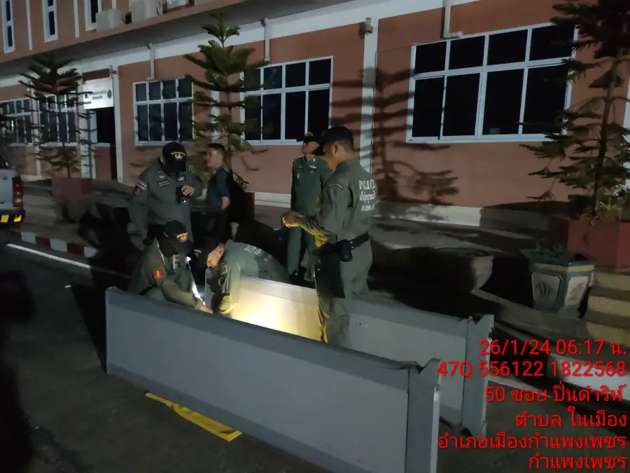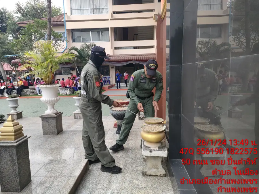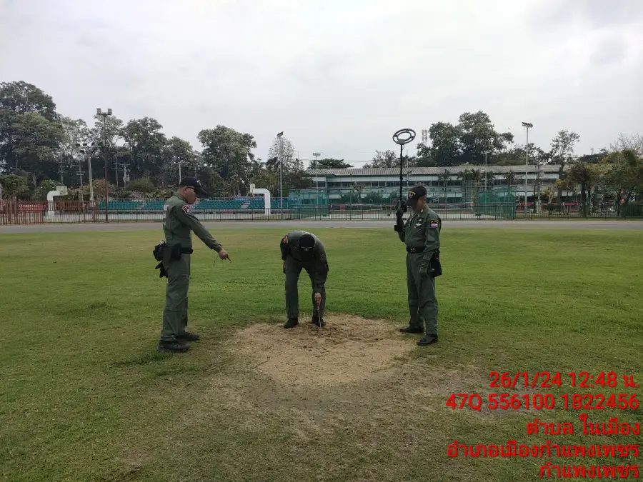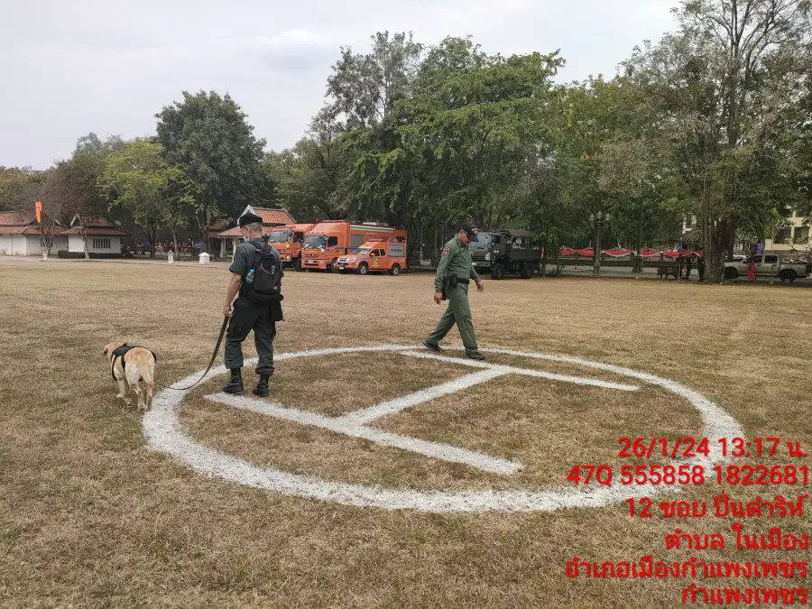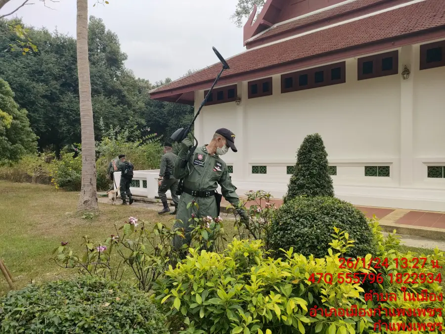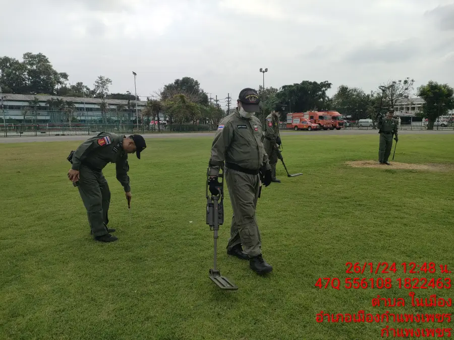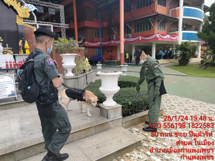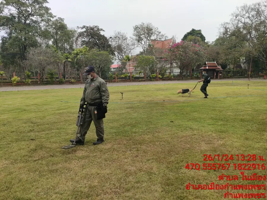 – เวลา 13.50 น.-14.05 น. ทำการตรวจบริเวณ ตึก B3 (โดมเวทีคอนเสิร์ต) ณ วิทยาลัยเทคนิคกำแพงเพชร อ.เมือง จว.กำแพงเพชร