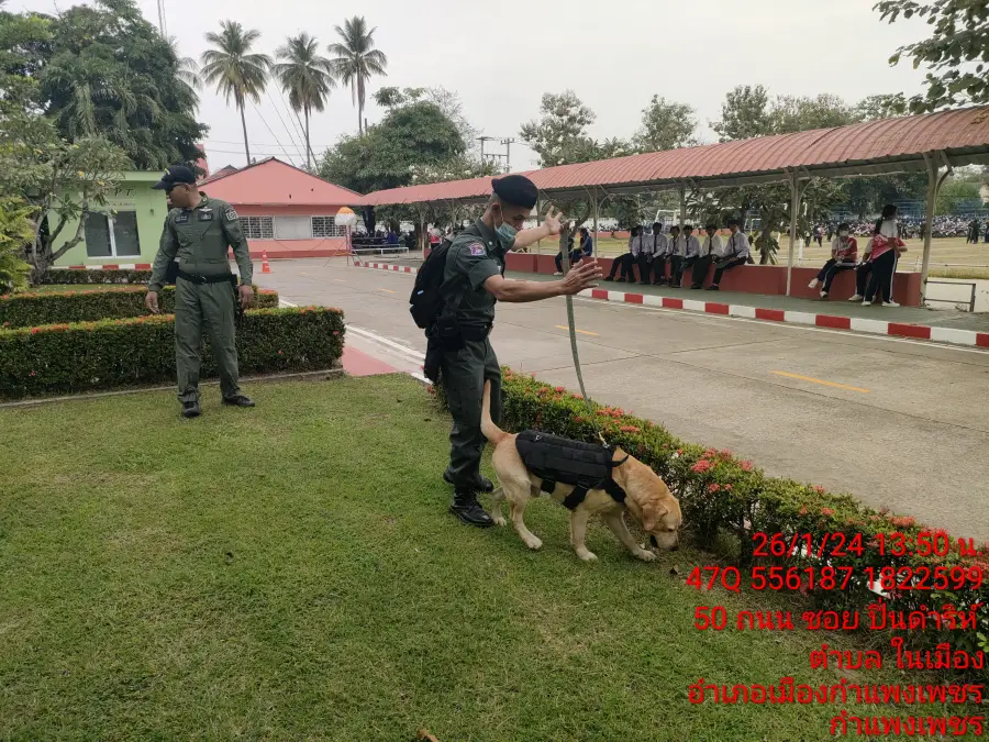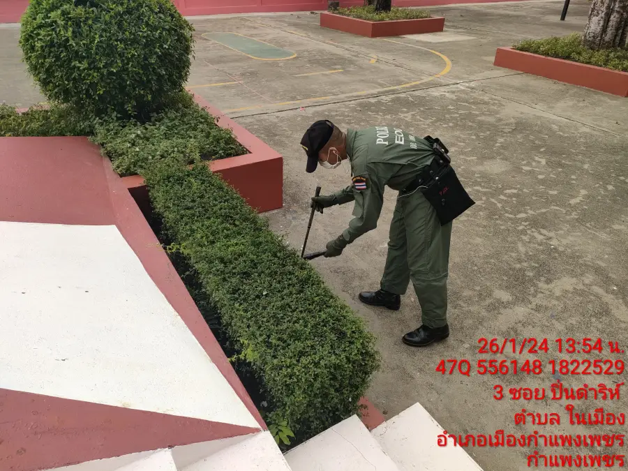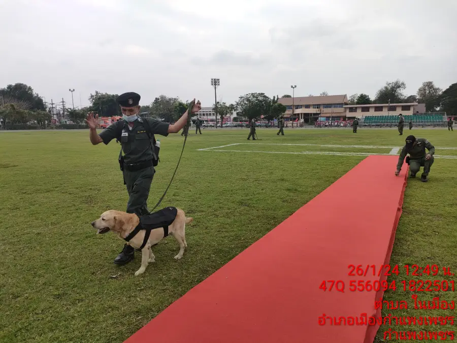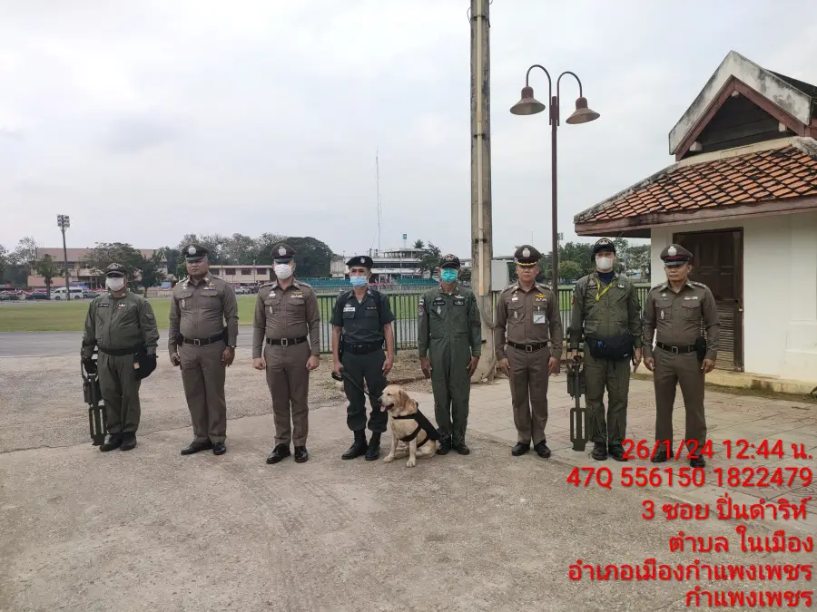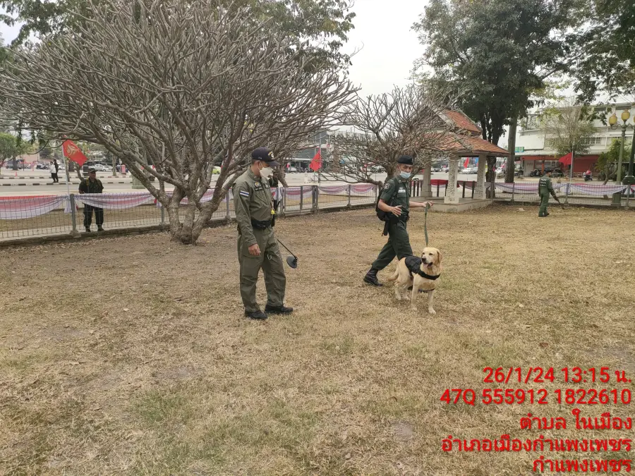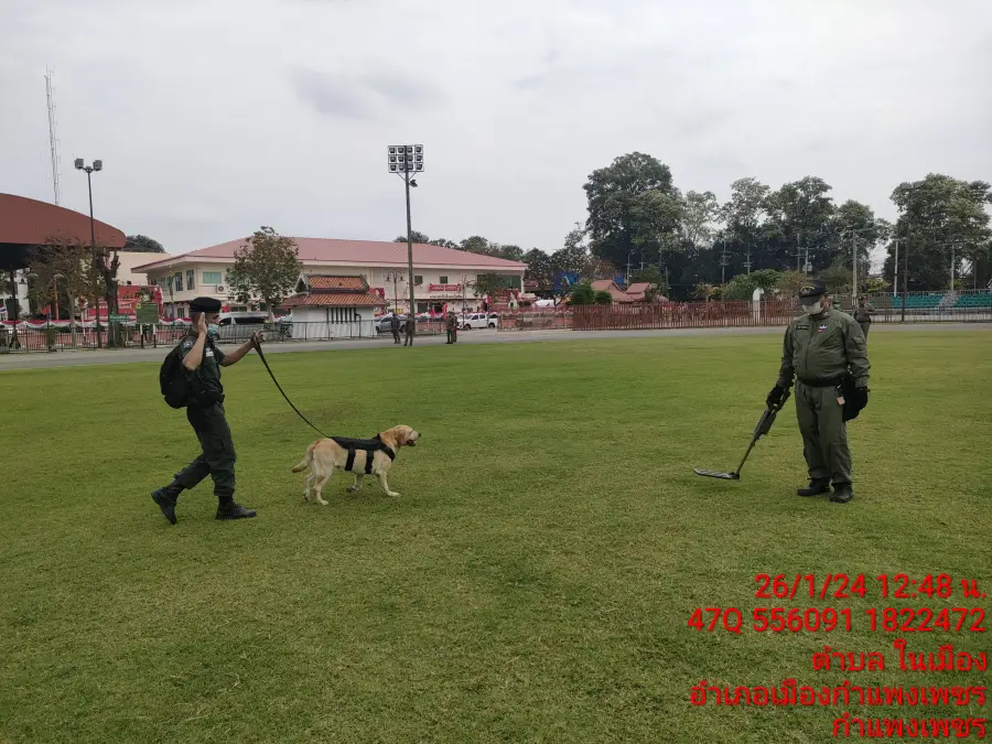 26 ม.ค.67 ร.ต.อ.วิชัย สินสุนทรไชย รอง สว.กก.ตชด.34/หน.ชุดเก็บกู้ฯ ชุดที่ 1 พร้อมกำลังพล จำนวน 5 นาย ร่วมกับ ร.ต.ต.พรศักดิ์ อินทรสิทธิ์ ผบส./สค.ทำหน้าที่ สตบ. ,จนท.มว.ขนส่ง กก.ตชด.34, จนท.ตร.ภ.จว.กำแพงเพชร และ จนท.ตร.บก.สส.ภาค 6 ปฏิบัติภารกิจถวายความปลอดภัย ทูลกระหม่อมหญิงอุบลรัตนราชกัญญา สิริวัฒนาพรรณวดี เสด็จพระราชดำเนินทรงปฏิบัติพระราชกรณียกิจ พื้นที่ จว.กำแพงเพชร