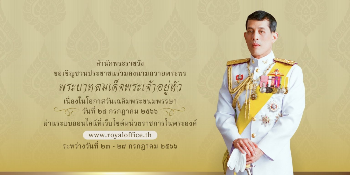 สำนักพระราชวัง ขอเชิญชวนร่วมลงนามถวายพระพรชัยมงคล สมเด็จพระเจ้าน้องนางเธอ เจ้าฟ้าจุฬาภรณวลัยลักษณ์ อ